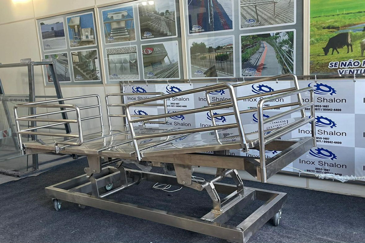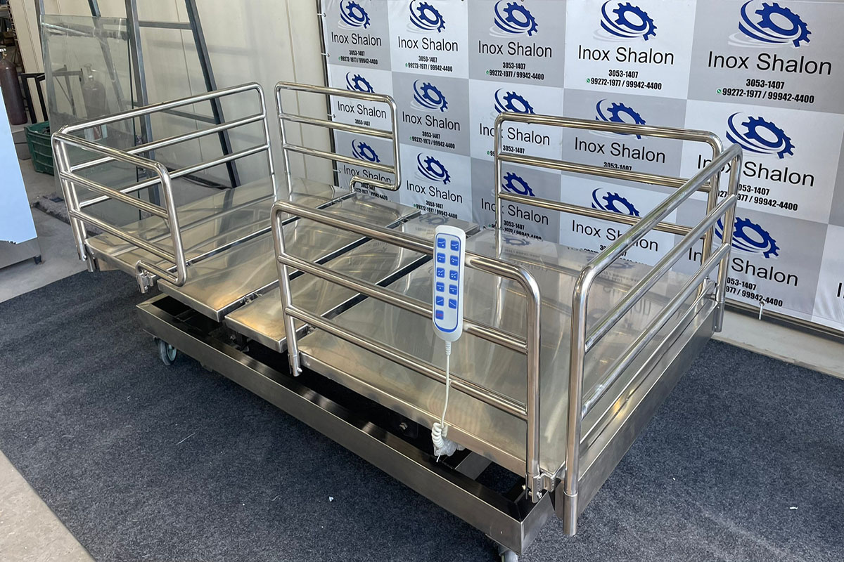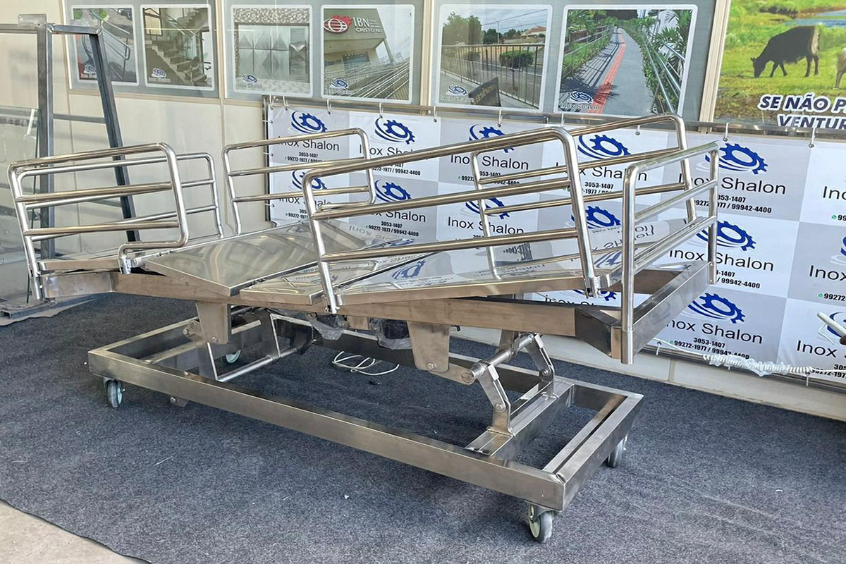 - Descrição: As camas hospitalares em aço inox são produzidas com a qualidade Inox Shalon, são camas elétricas com balança de elevação do leito, com capacidade de peso em até 580 kg. Com registro de patente somos a criadora da primeira ‘‘Cama hospitalar em aço inox, com conforto para Obesos’’ do mercado. As camas são indicadas para acomodar os pacientes de forma segura e confortáveis, que necessitem de internações, em tratamentos pré e pós-operatórios. Nós utilizamos equipamentos e profissionais de ponta para desenvolver e assegurar a qualidade dos nossos produtos e garantir sua durabilidade.